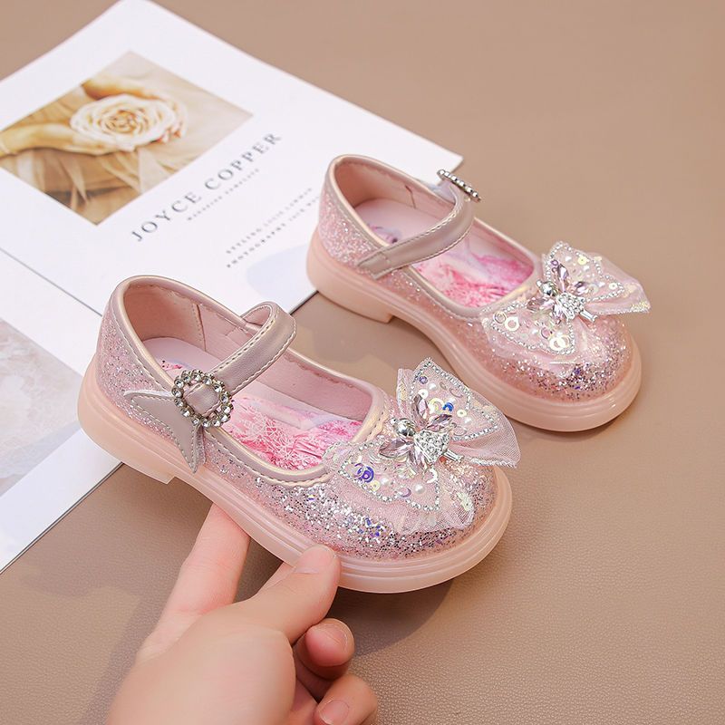 Disney Anti Slip Sole Girls' Luminous Pu Leather LED Light Shoes Frozen Children's Glitter Elsa Princess Shiny Shoes Size 23-34