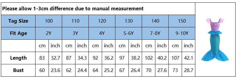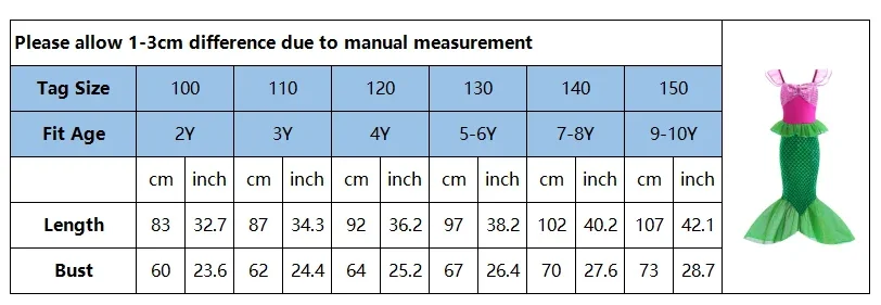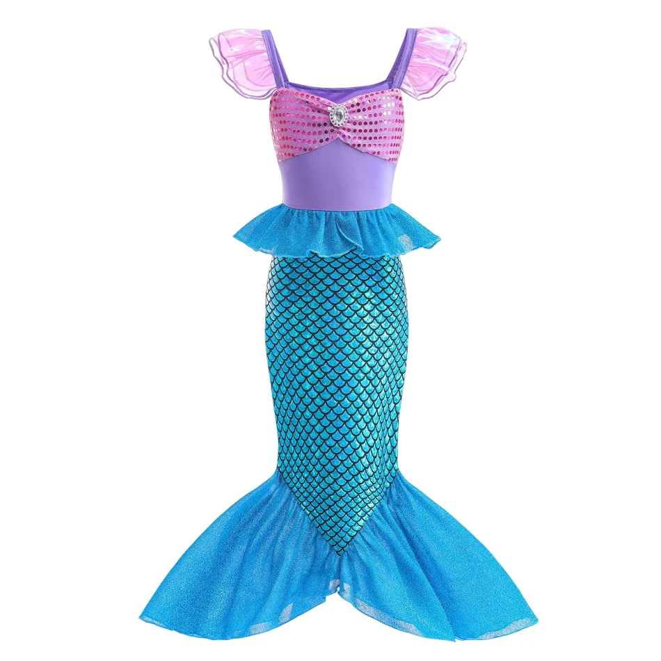 Disney Ariel Princess Little Mermaid Dress Girl Charm Cosplay Costume Kids Birthday Party Halloween Disguise Clothes