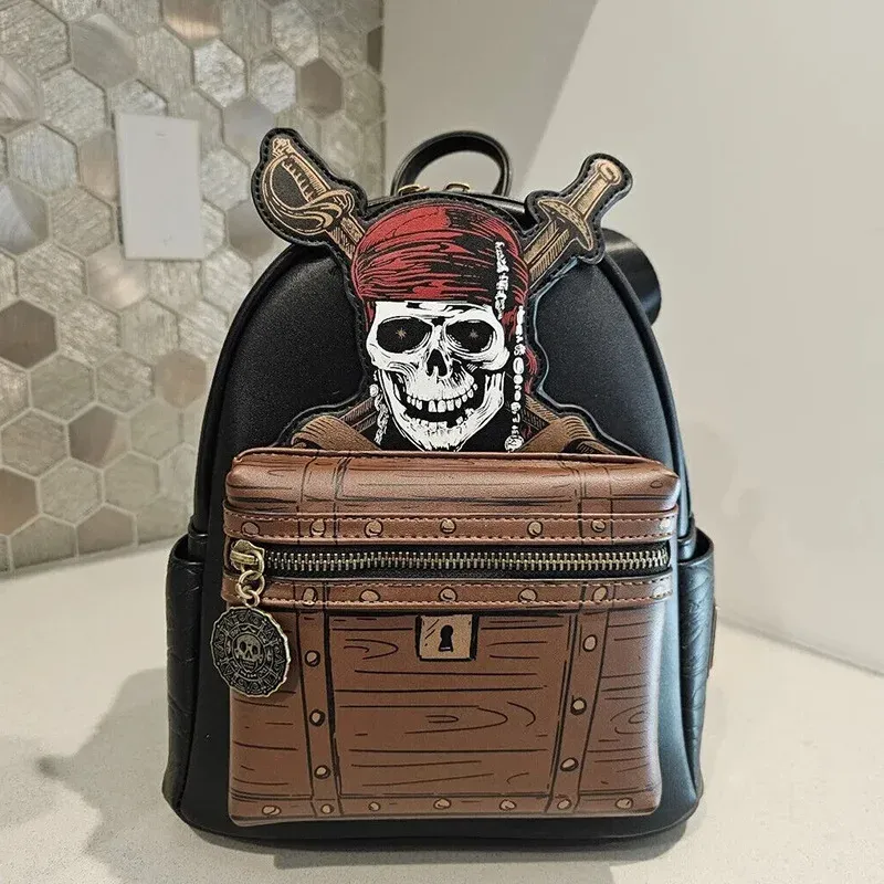 Disney Caribbean Pirates 6 Captain Jack Fashion Girl Backpack PU Leather Backpack Womens Double Strap Bags Christmas Gifts