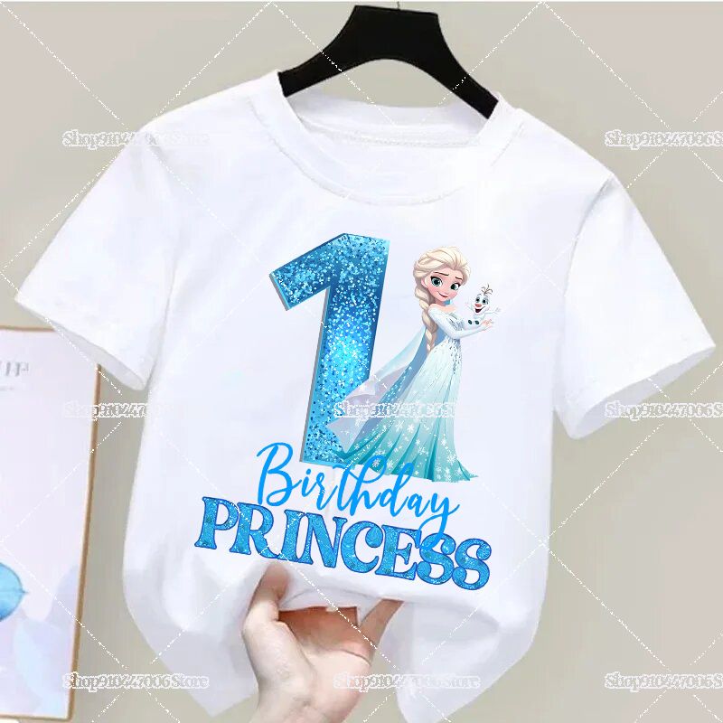 Disney Cartoon Frozen Digital T-Shirt Elsa Princess Graphic Print Tees Children Shirts Birthdays Number 1-9 Tops Kids Clothes