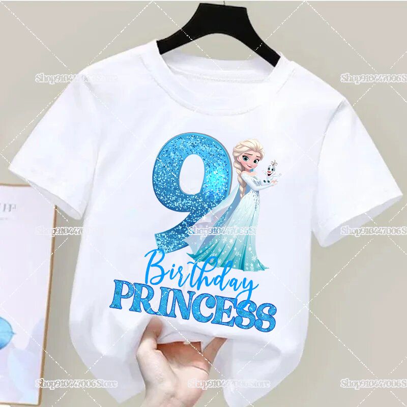 Disney Cartoon Frozen Digital T-Shirt Elsa Princess Graphic Print Tees Children Shirts Birthdays Number 1-9 Tops Kids Clothes