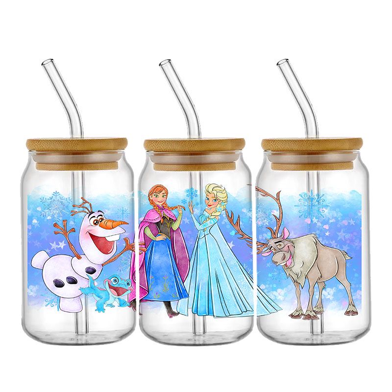 Disney Elsa Anna Princess Frozen Cartoon For Libbey Wraps 16oz Can Glass 3D Waterproof UV DTF Coffee Can Wrap Libbey Glass Wrap