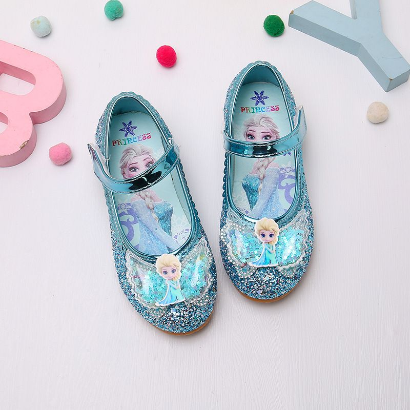 Disney Elsa Frozen Girls Princess Shoes Spring and Autumn Flat Paillette Shoes Children's Soft Sole Baby Casual Shoe Party Shoes