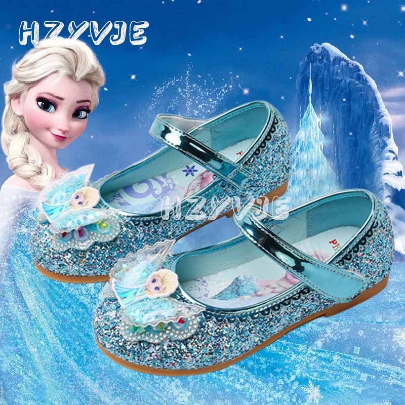 Disney Elsa Frozen Girls Princess Shoes Spring and Autumn Flat Paillette Shoes Children's Soft Sole Baby Casual Shoe Party Shoes