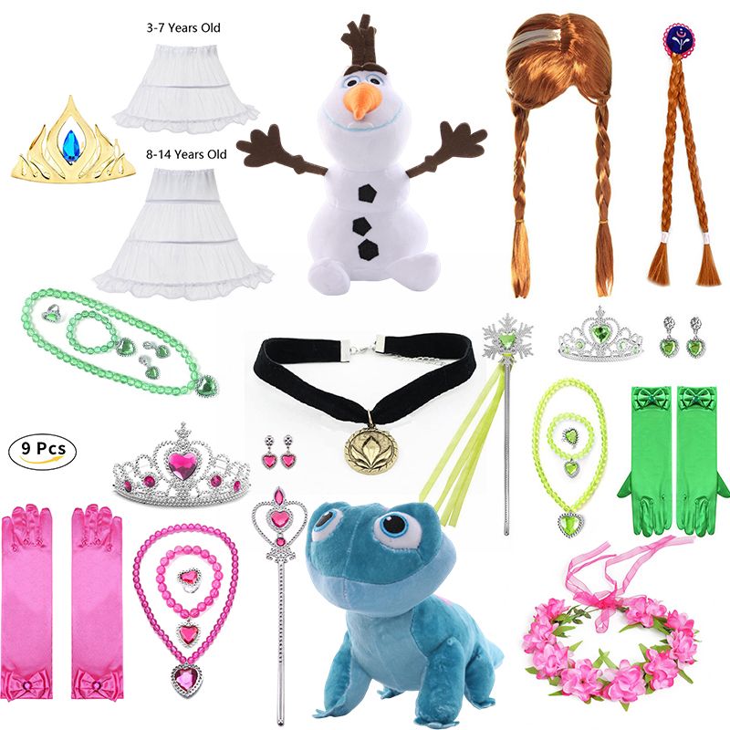 Disney Frozen 2 Snow Queen Elsa Anna Princess Pink Green Accessories Wand Crown Neacklace And Wig Glove Doll Lizard Olaf Toys