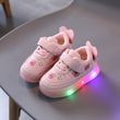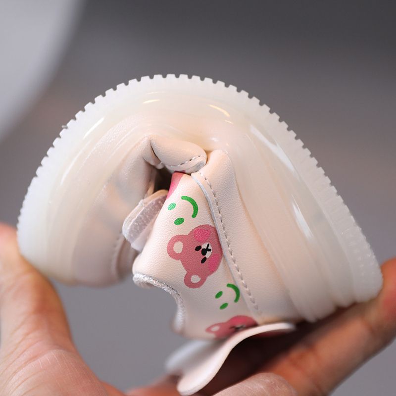 Disney LED Casual Sneakers For Spring Outdoor Cartoon Shoes Children Lighted Non-slip PU Leather Bear White Shoes Size 21-30