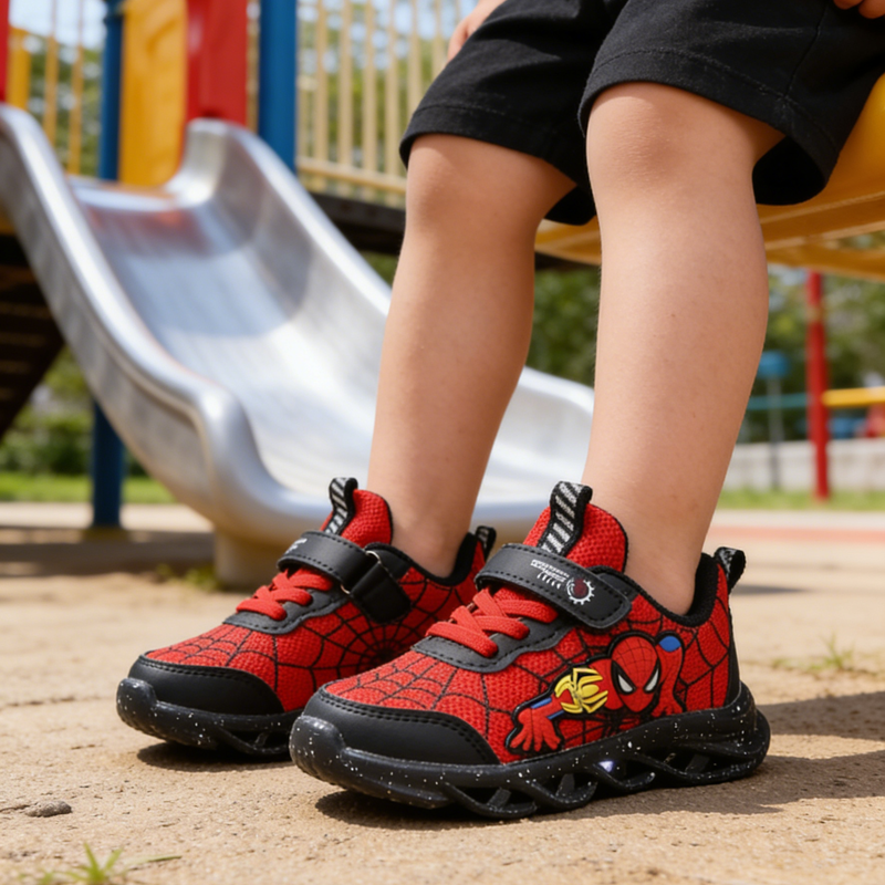 Disney LED Casual Sneakers Red Black For Spring Boys Mesh Outdoor Shoes Children Lighted Non-slip Shoes Size 21-30
