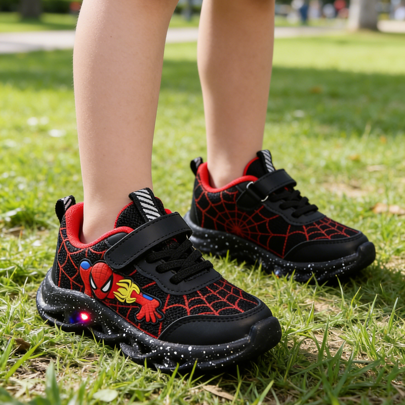 Disney LED Casual Sneakers Red Black For Spring Boys Mesh Outdoor Shoes Children Lighted Non-slip Shoes Size 21-30