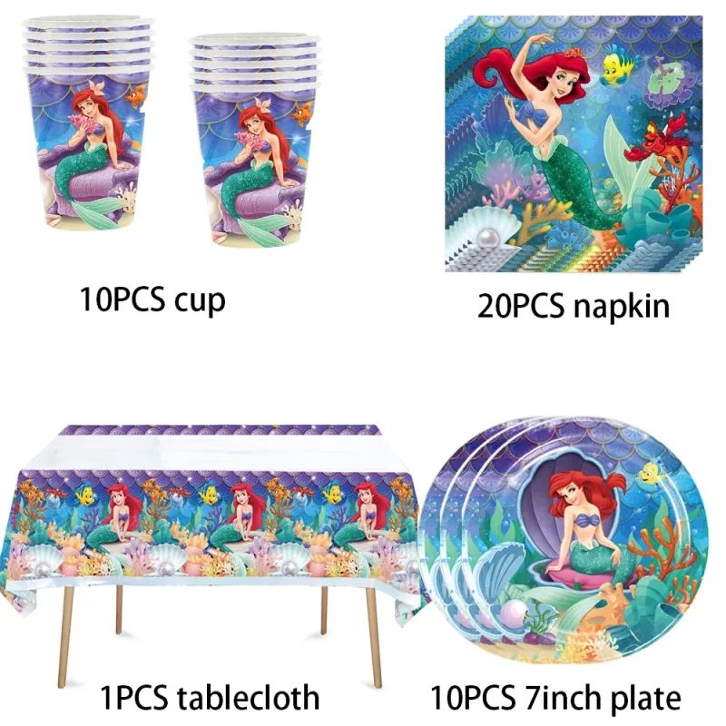 Disney Mermaid Ariel Birthday Party Decoration Princess Tableware Cup Plate Banner for Kids Party Favor Baby Shower Supplies