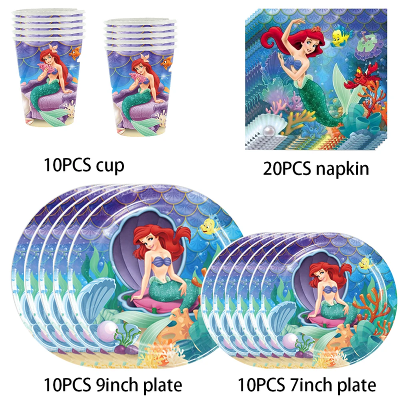 Disney Mermaid Ariel Birthday Party Decoration Princess Tableware Cup Plate Banner for Kids Party Favor Baby Shower Supplies