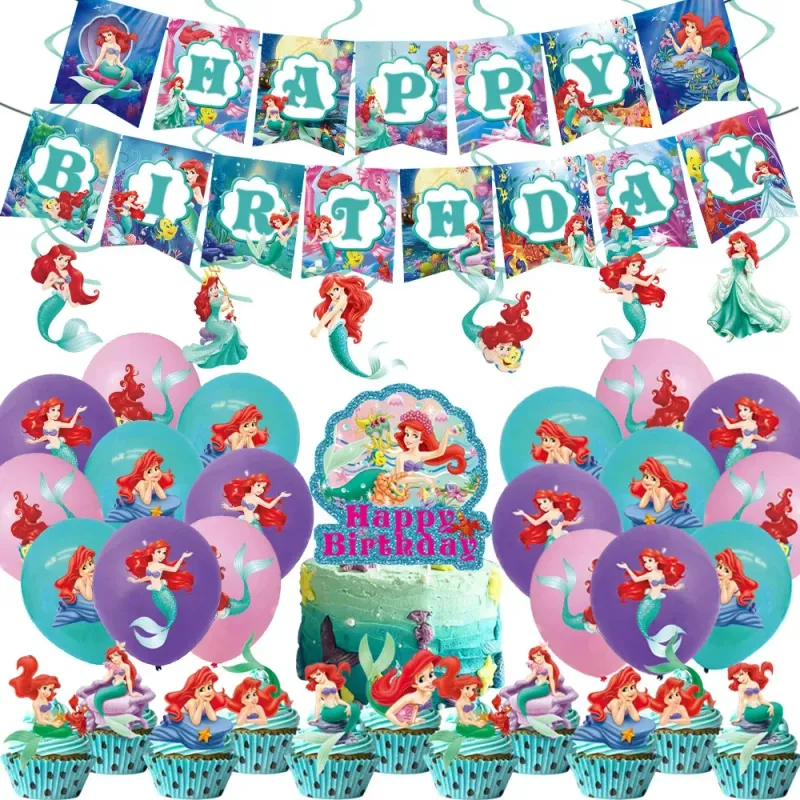 Disney Mermaid Ariel Birthday Party Decoration Princess Tableware Cup Plate Banner for Kids Party Favor Baby Shower Supplies