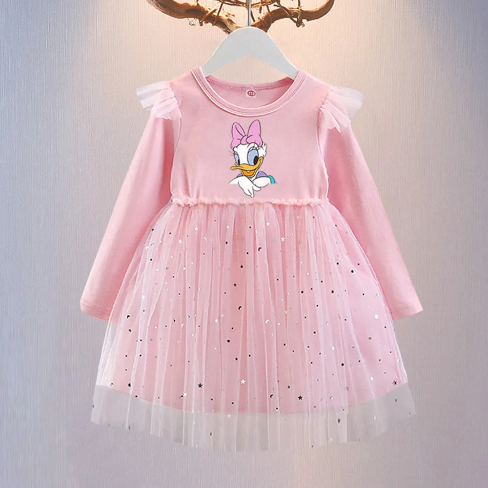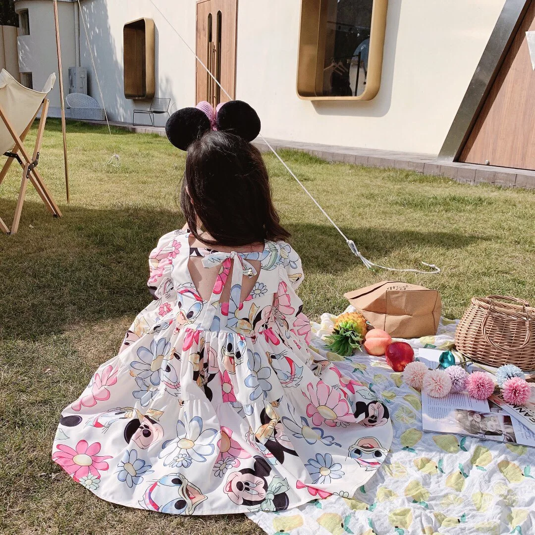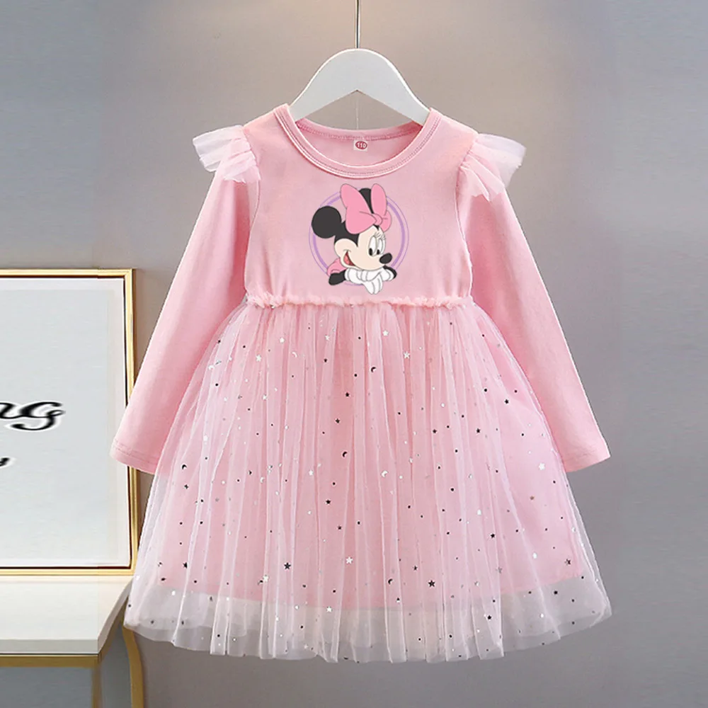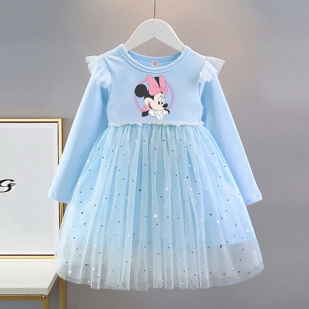 Disney Mickey Baby Girl Black Tutu Dress Long Sleeve Autumn Child Princess Dresses 1-8Y Children Clothes One Piece Floral Dress