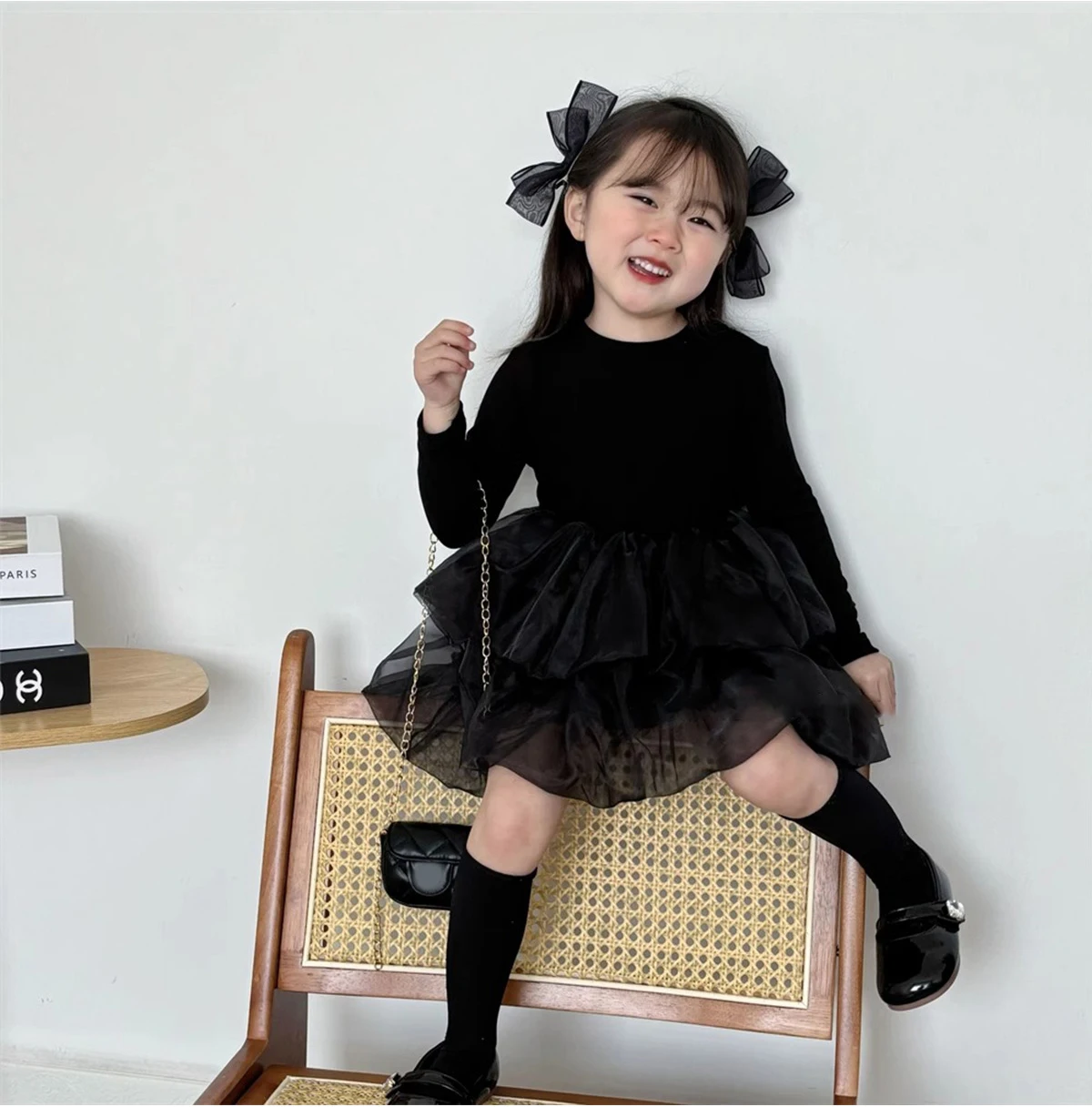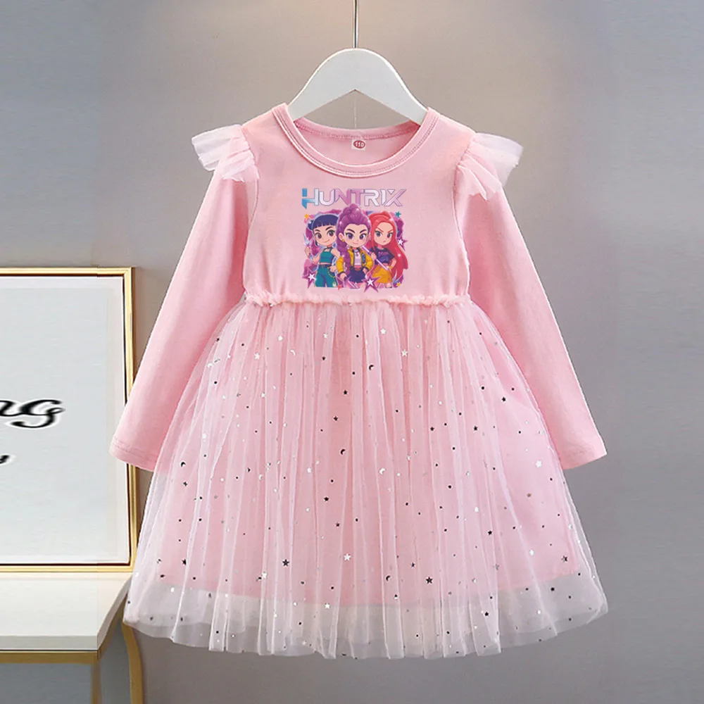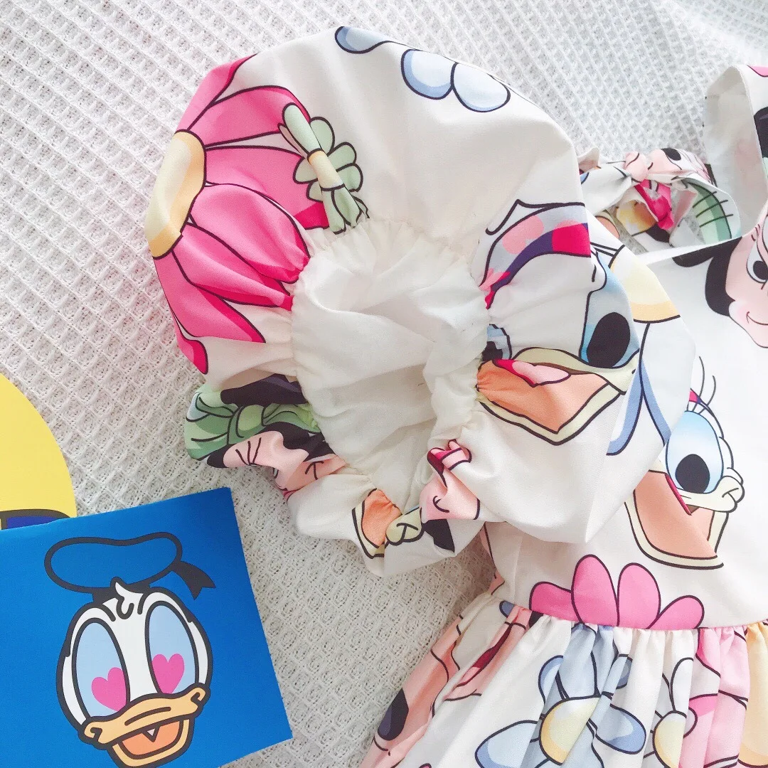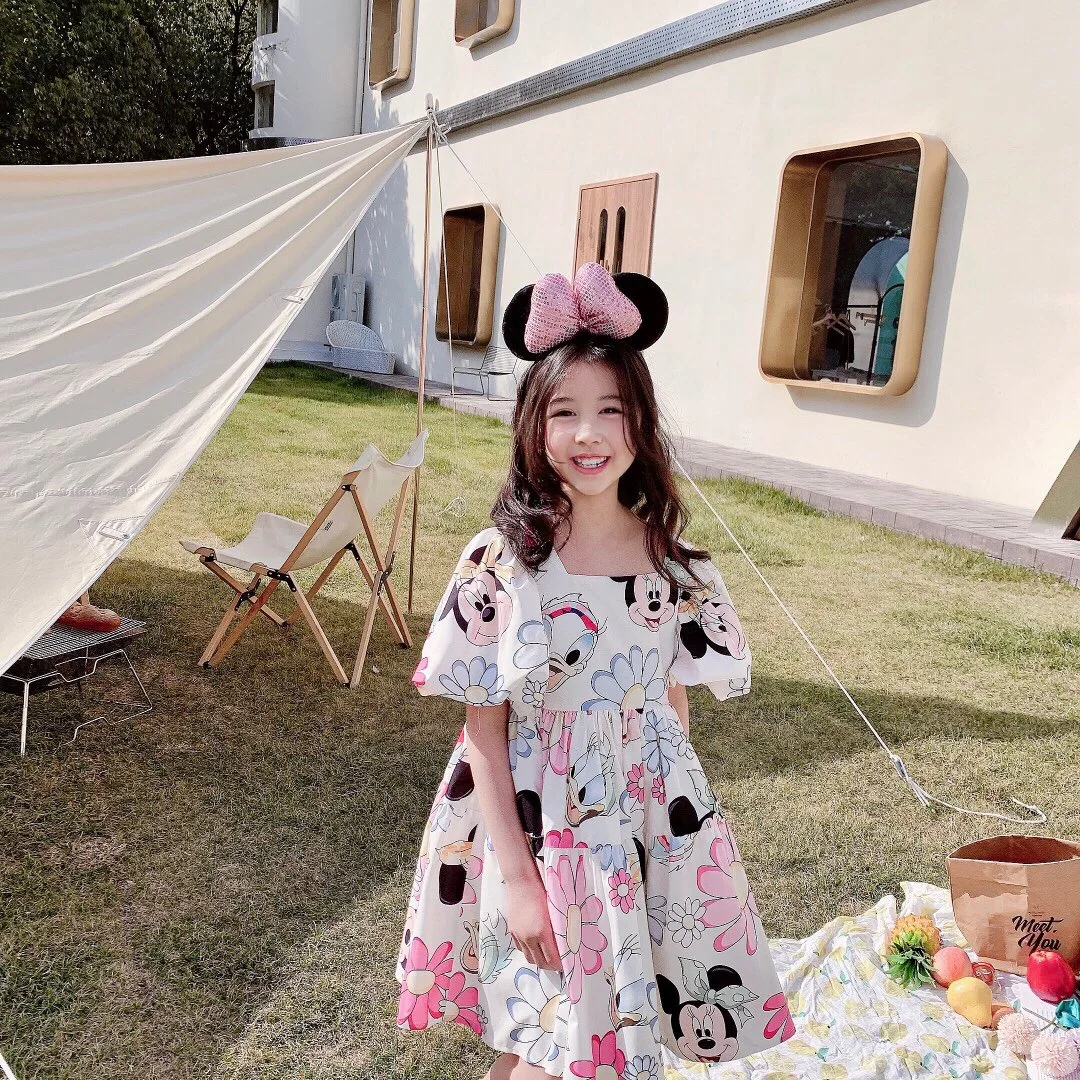Disney Mickey Baby Girl Black Tutu Dress Long Sleeve Autumn Child Princess Dresses 1-8Y Children Clothes One Piece Floral Dress