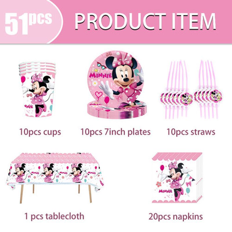 Disney Minnie Mouse Birthday Party Decoration Tableware Kit Hanging Banner Backdrop Balloons Supplies For Kids Party Supplies
