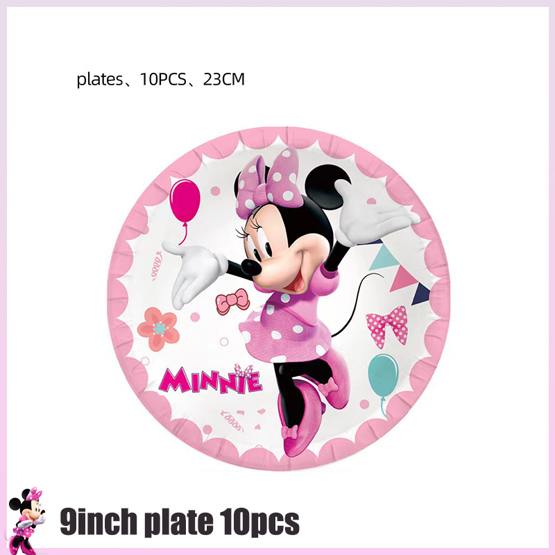 Disney Minnie Mouse Birthday Party Decoration Tableware Kit Hanging Banner Backdrop Balloons Supplies For Kids Party Supplies