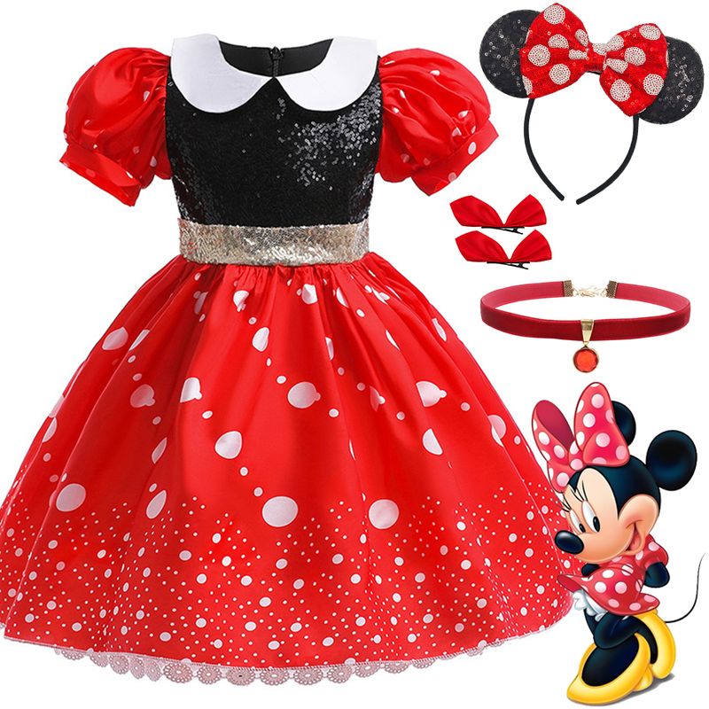 Disney Minnie Mouse Polka Dot Bow Princess Dress Toddler Christmas Carnival Birthday Party Gown Children Girls Fancy Costume