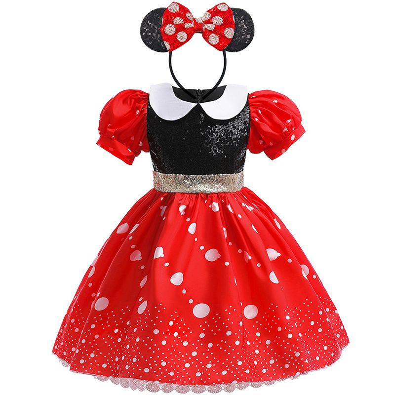 Disney Minnie Mouse Polka Dot Bow Princess Dress Toddler Christmas Carnival Birthday Party Gown Children Girls Fancy Costume