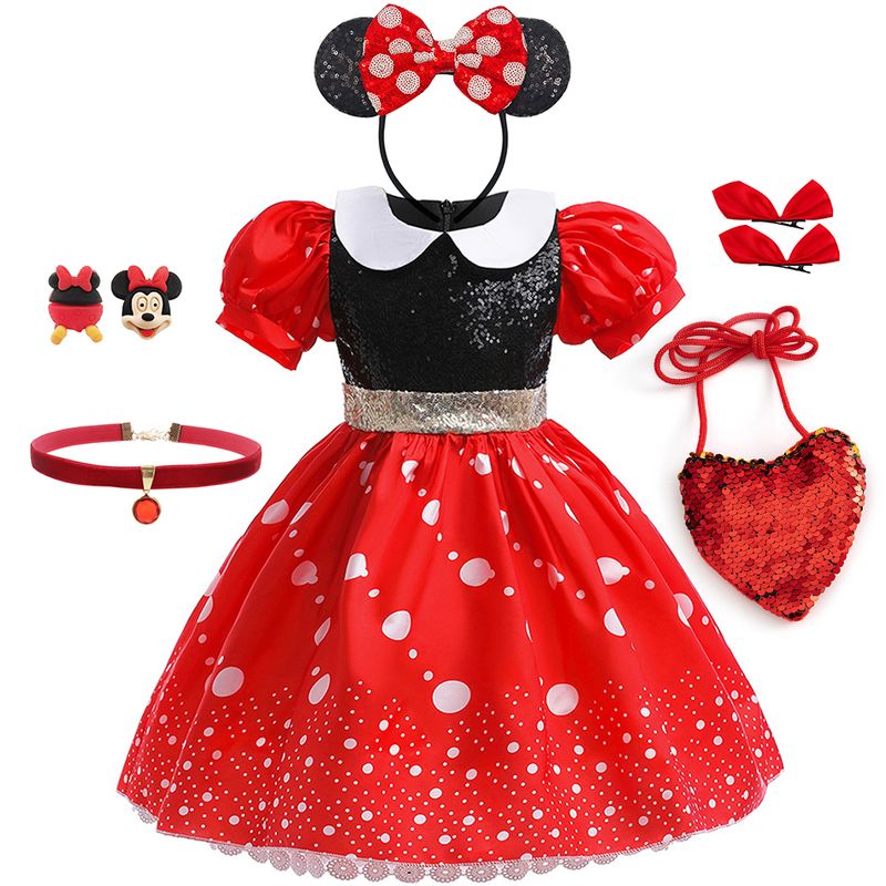 Disney Minnie Mouse Polka Dot Bow Princess Dress Toddler Christmas Carnival Birthday Party Gown Children Girls Fancy Costume