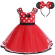 Disney Minnie Mouse Polka Dot Dress Girls Pink Red Summer Clothes Children Birthday Carnival Xmas Party Bow Mesh Gown Costumes