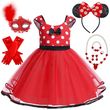 Disney Minnie Mouse Polka Dot Dress Girls Pink Red Summer Clothes Children Birthday Carnival Xmas Party Bow Mesh Gown Costumes