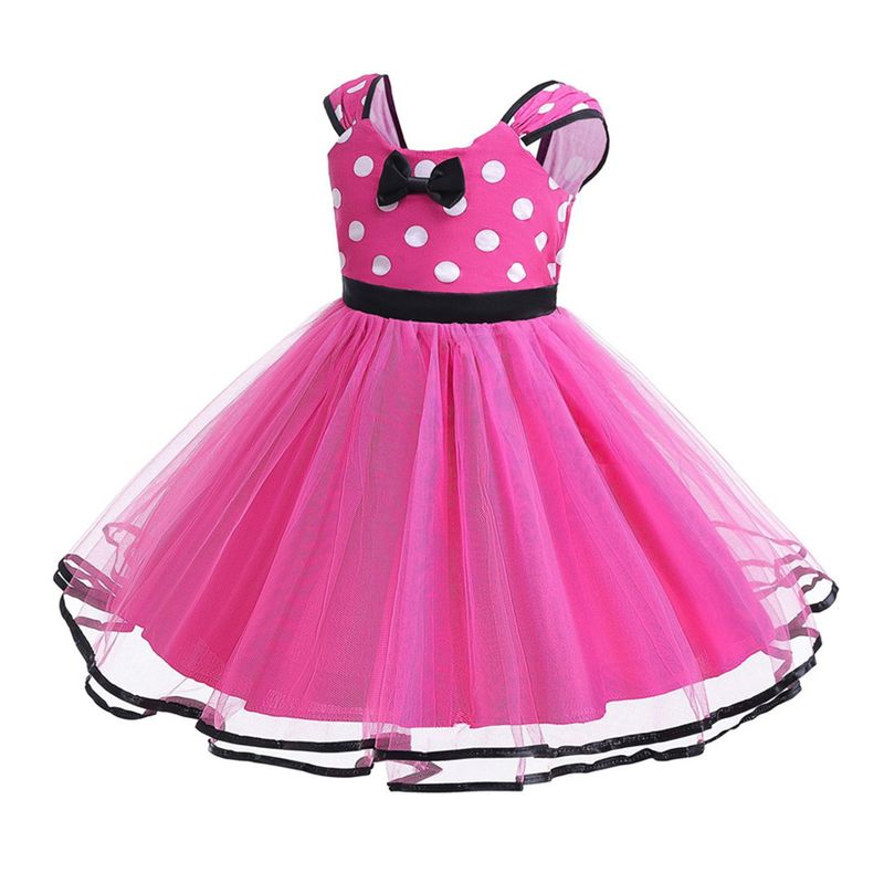 Disney Minnie Mouse Polka Dot Dress Girls Pink Red Summer Clothes Children Birthday Carnival Xmas Party Bow Mesh Gown Costumes