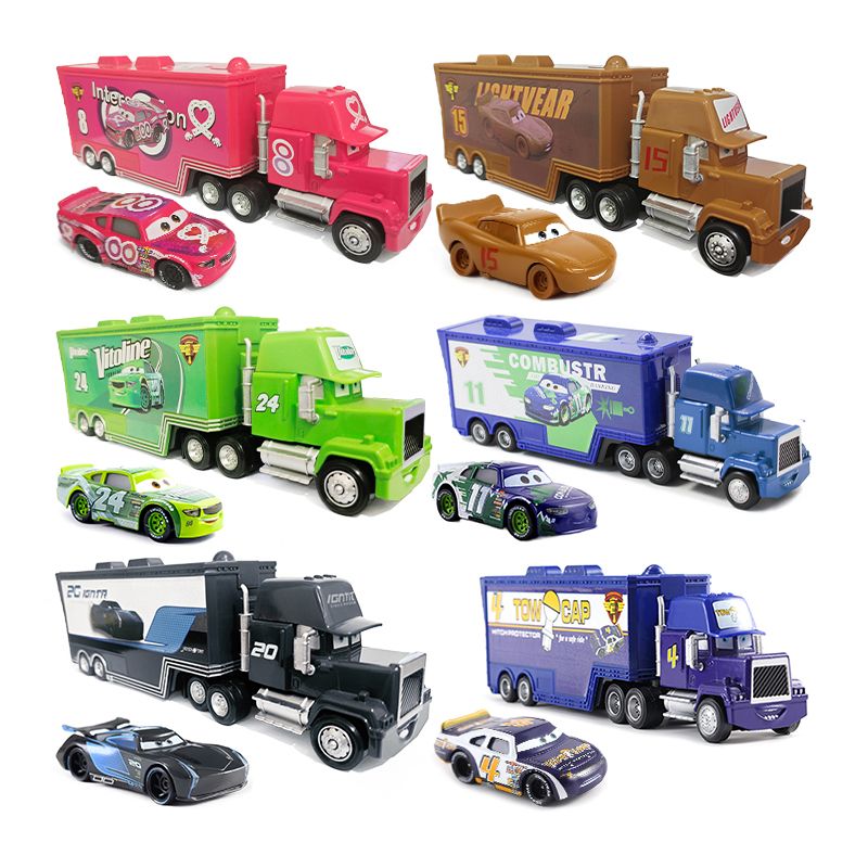 Disney Pixar Cars Container Trucks Mack McQueen Racing Jackson Storm Ramirez 1:55 Die Cast Model Anime Toy Car Birthday Gifts
