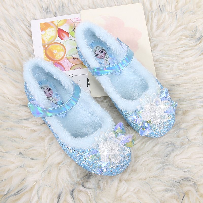 Disney Princess Crystal Shoes Girls Single Shoes Frozen Elsa Sophia Rhinestones Shoes Performance Party Pink Shoes Size 22-36