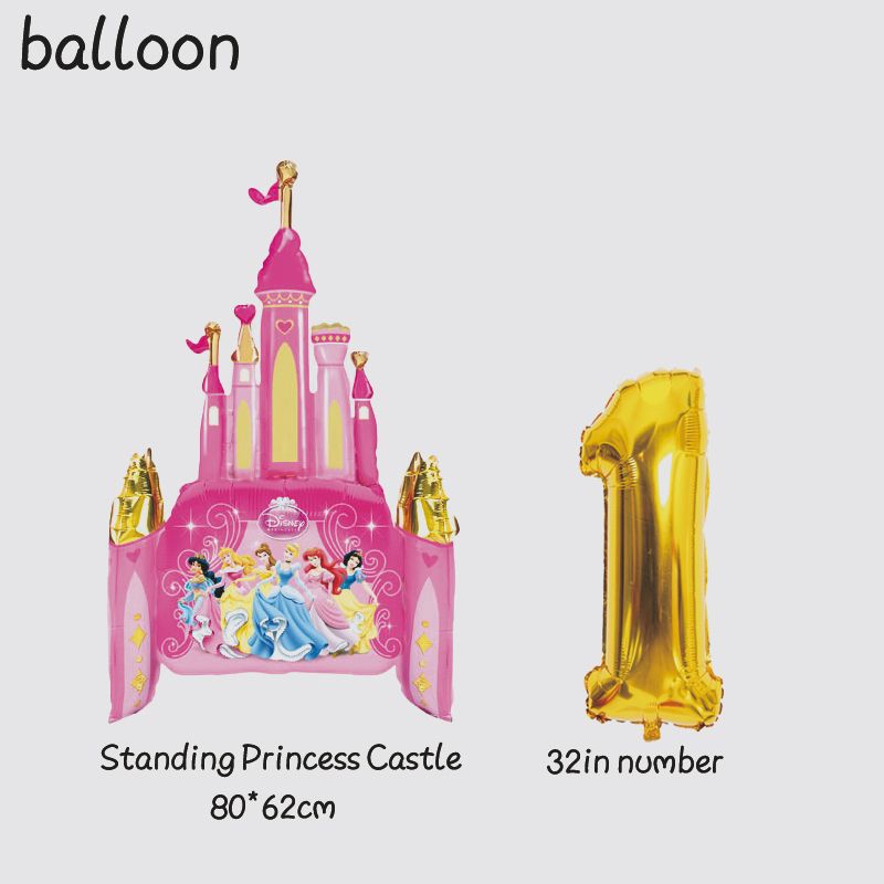 Disney Princess Standing Castle 3D Foil Balloon, Cartoon Character Birthday Party Decorations, Kids Baby Shower Supplies