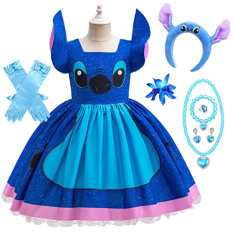 Disney Stitch Cosplay Princess Dress Girls Carnival Masquerade Party Cartoon Clothes Kids Halloween Festival Disguise Outfits