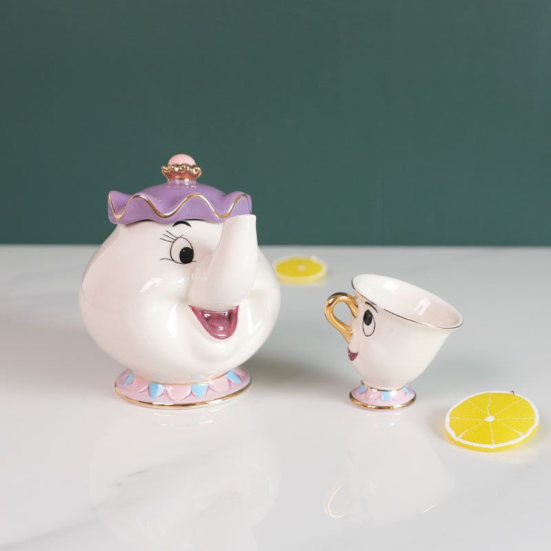 Disney Teapot Cartoon Beauty And The Beast Coffee Pots Mug Mrs Potts Chip Cup Tea Cup Pots One Tea Sets Droshipping Cute Gifts