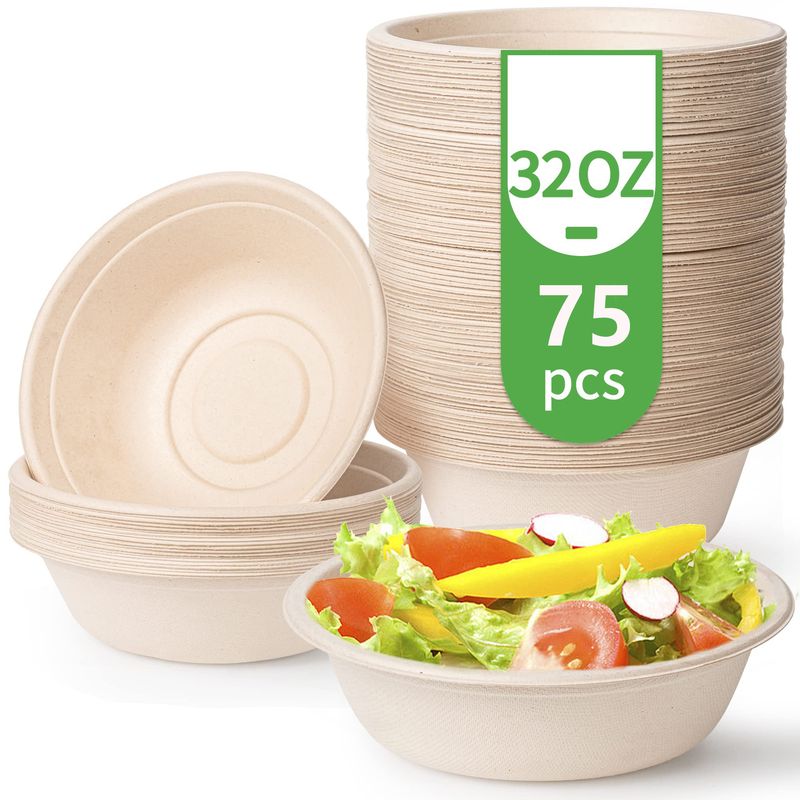 Disposable Paper Bowls -100% Compostable Biodegradable Eco-friendly - Convenient for Daily Use for Salad Hot Soup and Pasta