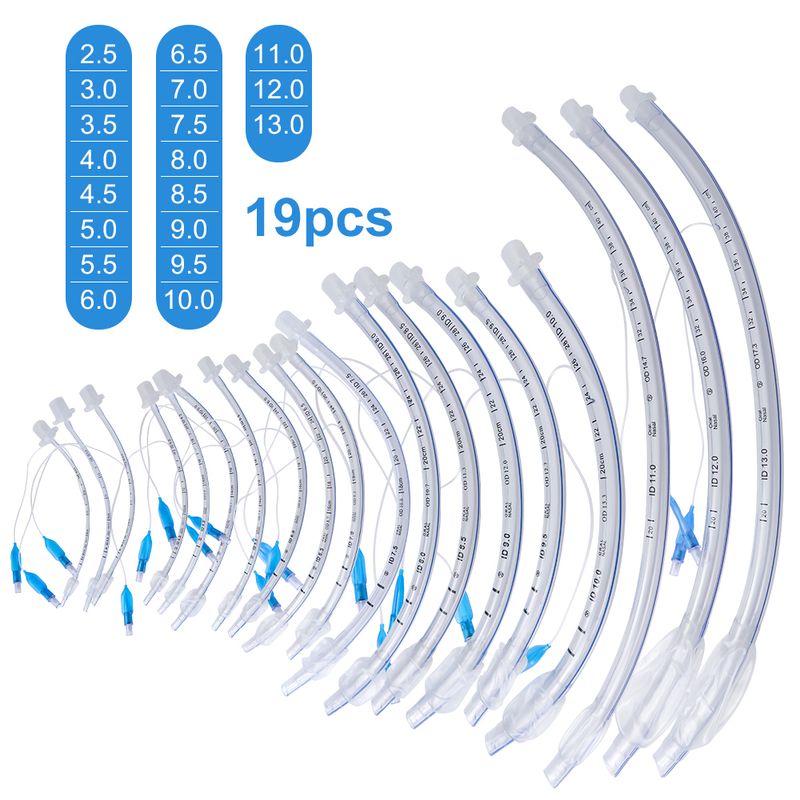 19pcs Disposable Sterile PVC Endotracheal Tube 2.5mm-13mm Size With Cuffed High Volume Low Pressure Cuff X-Ray Visible Line
