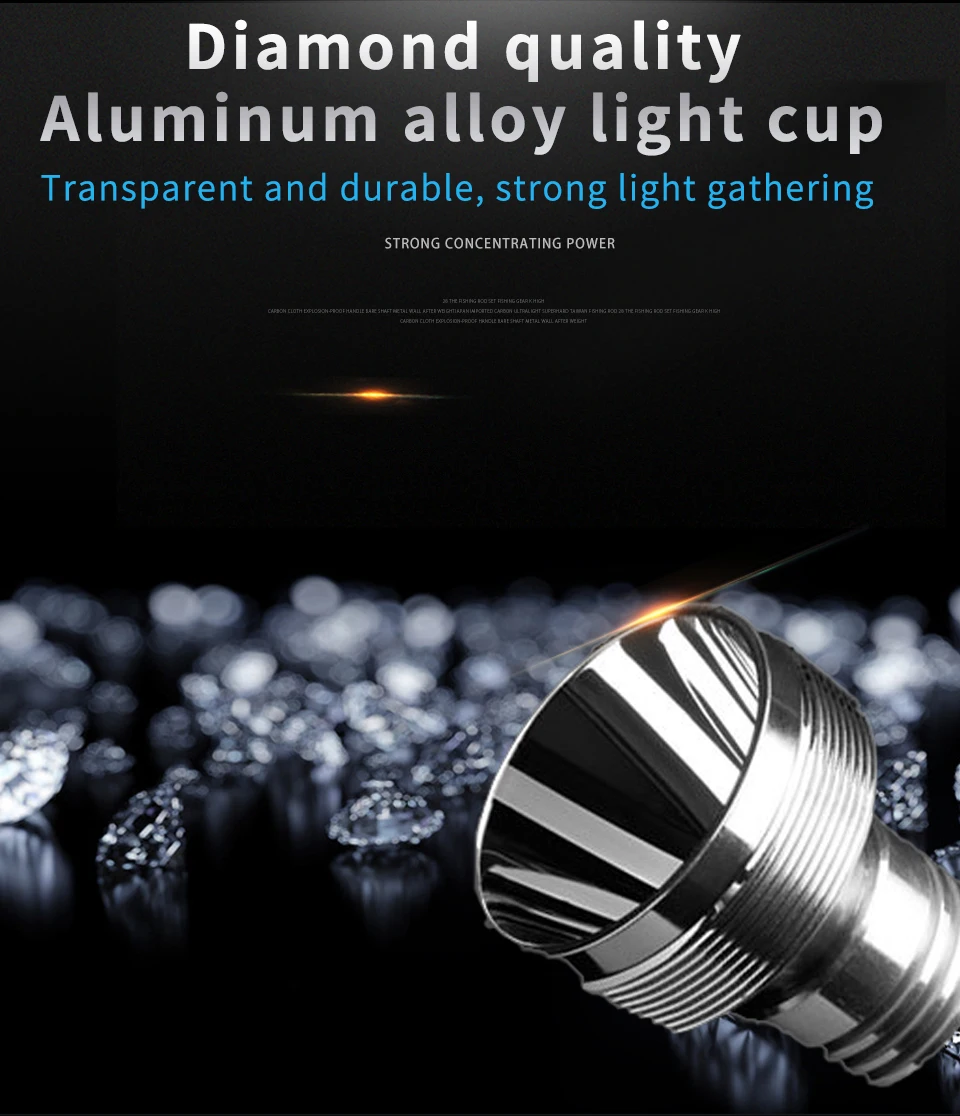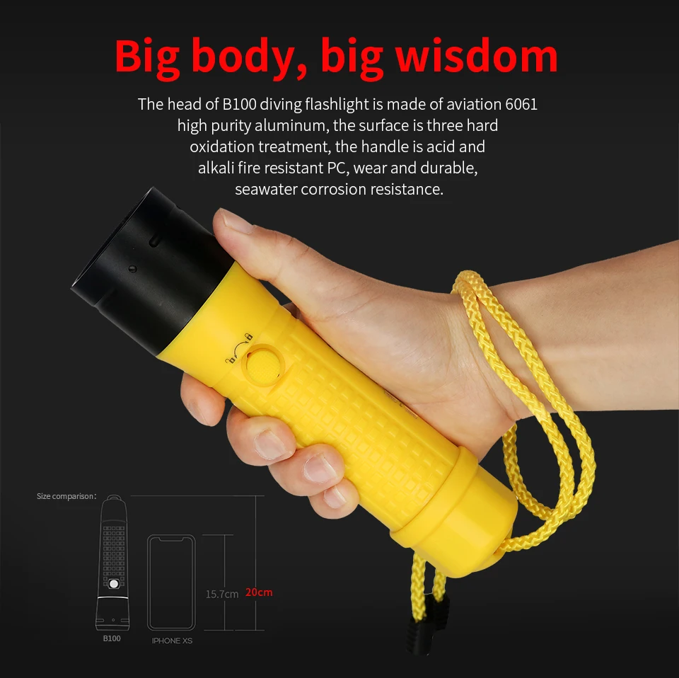 Diving Flashlight Material:Aluminum alloy + High density hard plastic