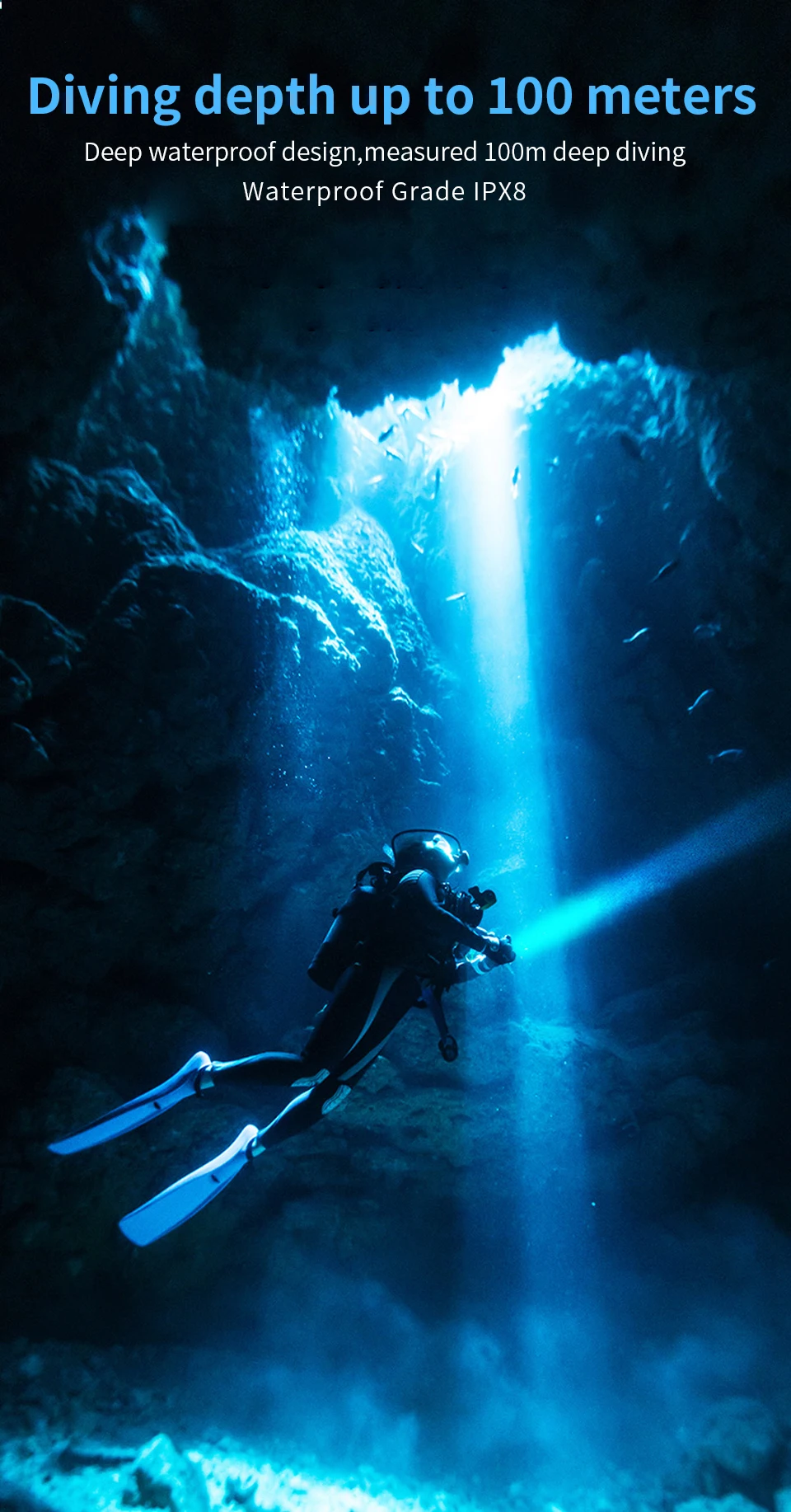 Diving Flashlight 3000LM CERR LED focus long waterproof night submersible fishing IPX8 outdoor underwater strong penetrati