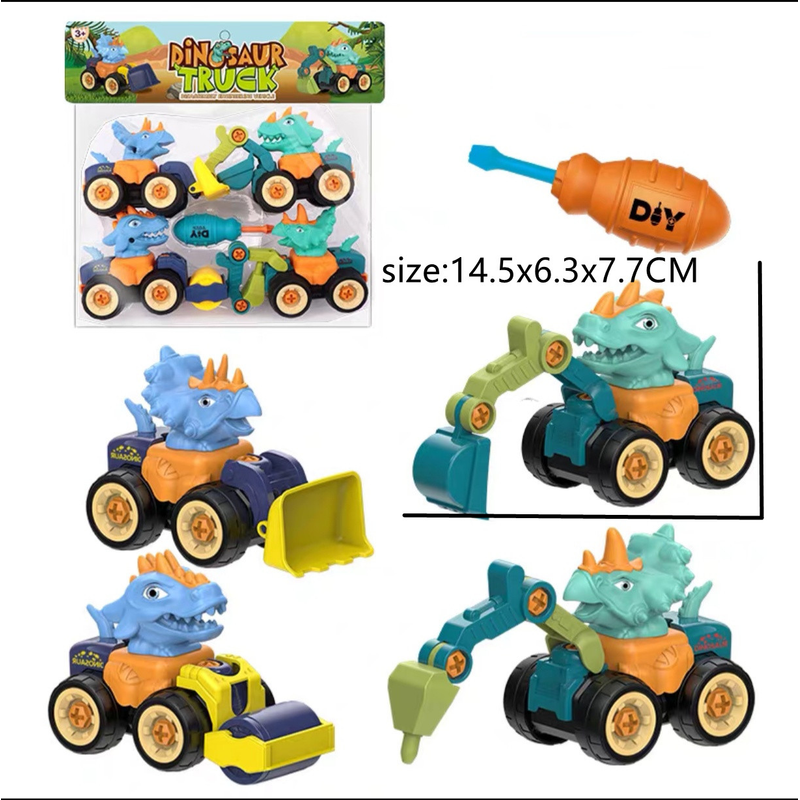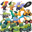 DIY children educational dinosaurs toys handcrafted car engineering transport vehicles excavators rollers T-rex Triceratops