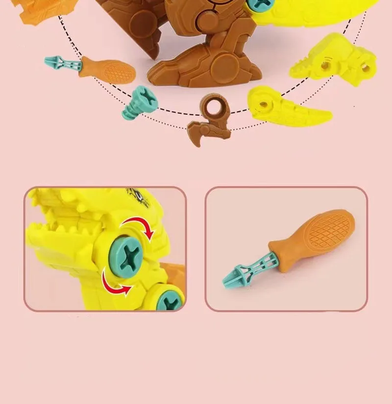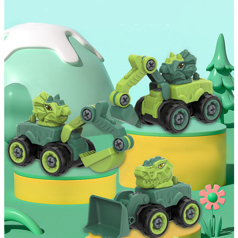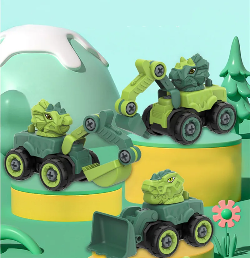 DIY children educational dinosaurs toys handcrafted car engineering transport vehicles excavators rollers T-rex Triceratops