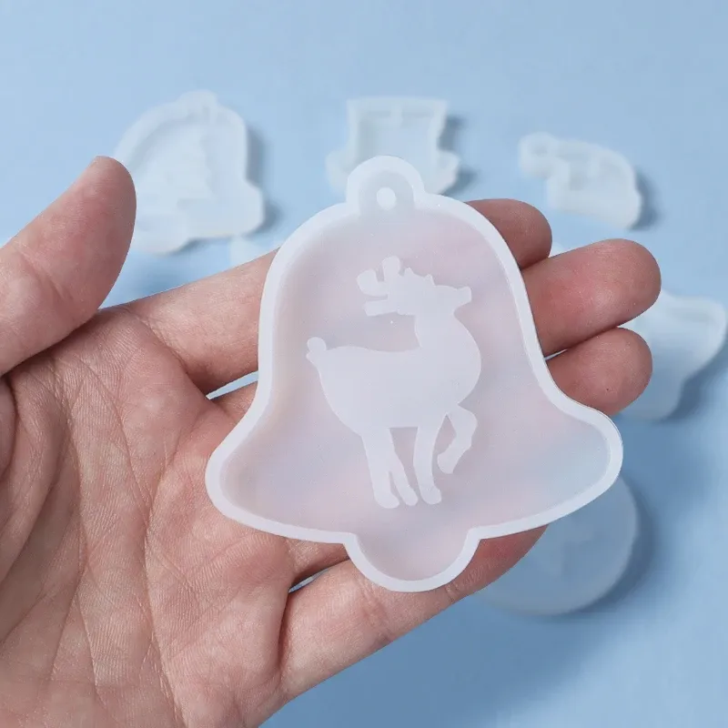 DIY Christmas Silicone Molds Pendant Crystal Epoxy Resin Molds Bell Christmas Tree Elk New Year Handcraft Accessories Decoration