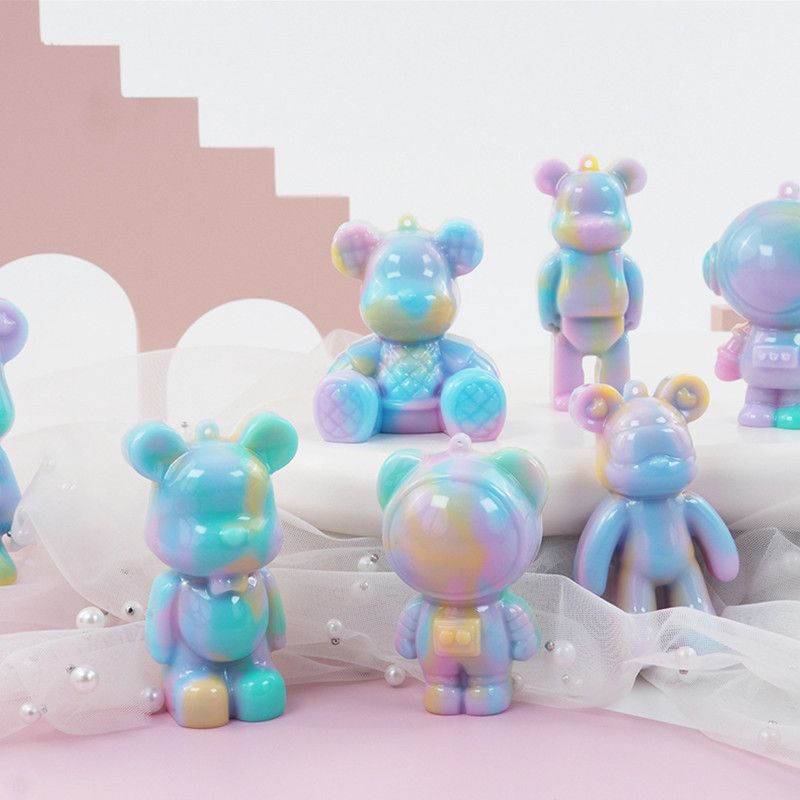 DIY Crystal Epoxy Resin Mold 3D Little Bear Spaceman Keychain With Hole Pendant Silicone Bloody Pink Bear Mold