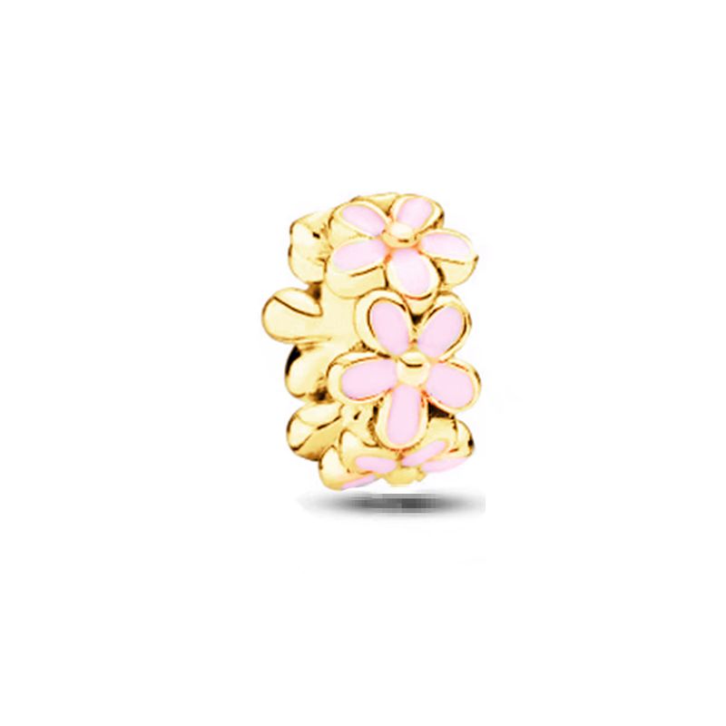 DIY Golden Women Jewelry Gifts Pink Flowers Charms Pink Daisy Flower The Nutcracker Cupcake Bow Beads Fit Original SankeBracelet
