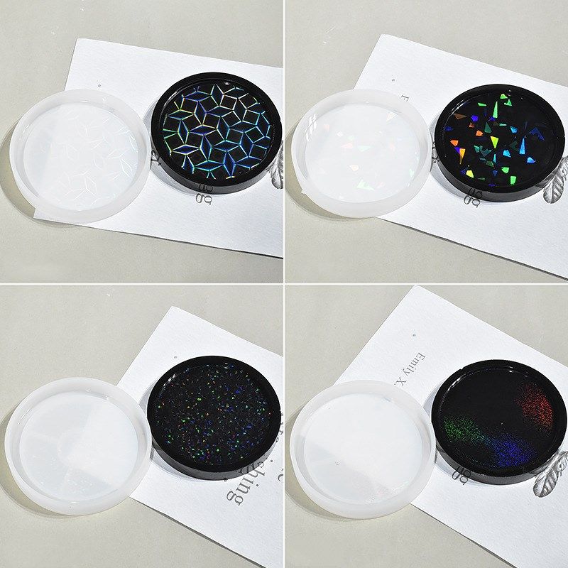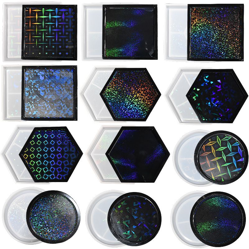 DIY Laser Holographic Coaster Silicone Mold Round Square Laser Cup Pad Tea Coaster Home Decoration For Epoxy Resin Making Molds
