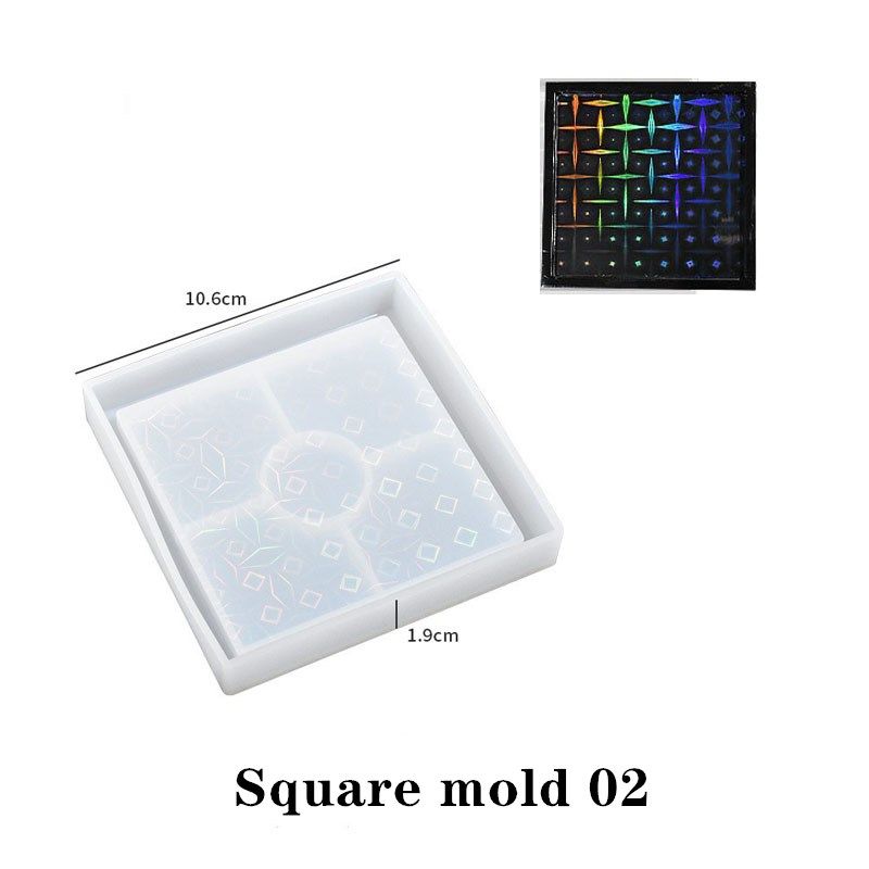 DIY Laser Holographic Coaster Silicone Mold Round Square Laser Cup Pad Tea Coaster Home Decoration For Epoxy Resin Making Molds