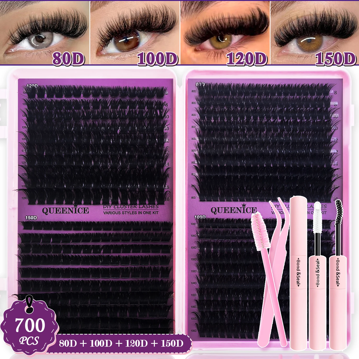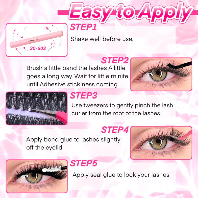 DIY Lash Extension Kit Clusters Individual Eyelashes Kit 9-16mm with Bond and Seal Wispy Natural Mange Lashes