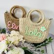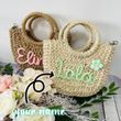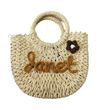 DIY Letter Name Seaside Vacation Style Grass Woven Handbag Straw Tote Crossbody Bag Khaki C2