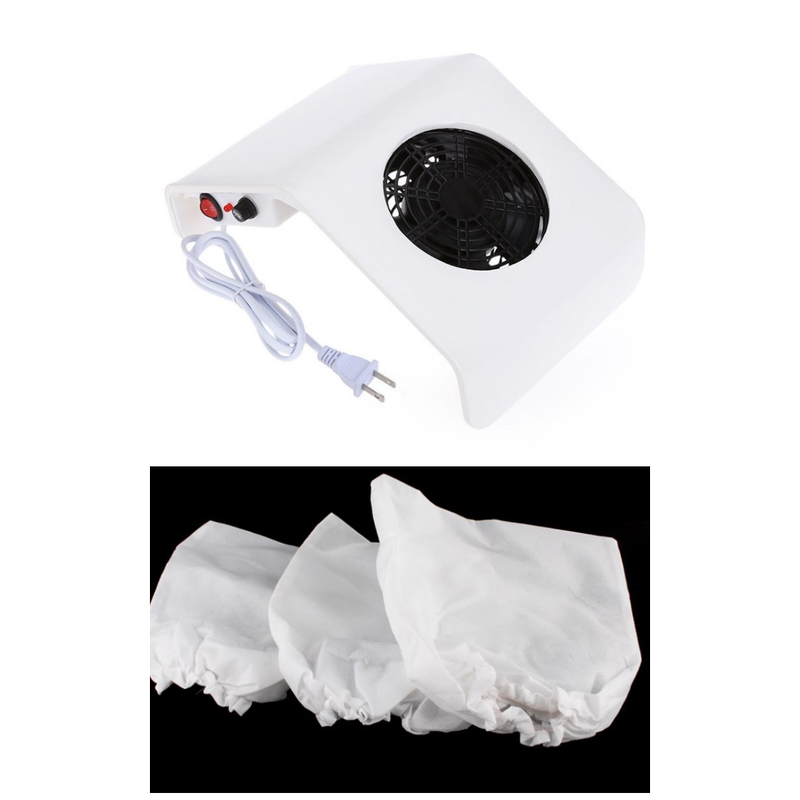 Turn on the fan, place your hand on the fan, and use strong suction to draw dust from the nail into the dust bag.