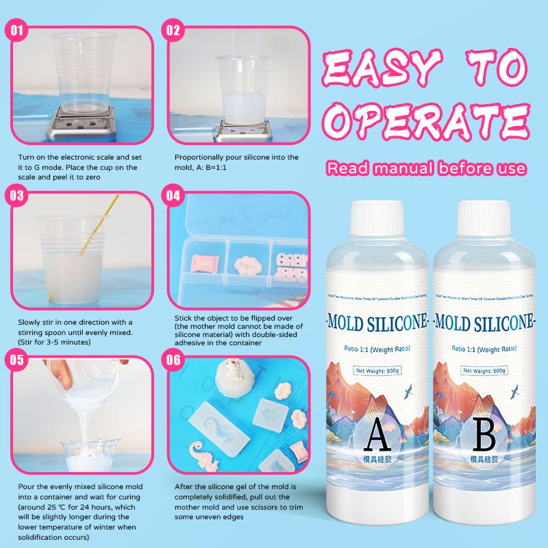 DIY Silicone Mold Making AB 1:1 Liquid Rubber Silicona Liquida Para Mold Fast Curing Mold Making Silicone Kit Cured 200g 500g