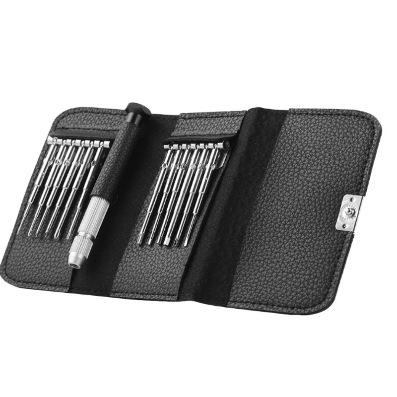 Our set of tools uses vanadium steel, high hardness, durable, and non-slip. Includes specifications: six-star T6 / T9, inner hexagon H1.5 / H2.0 / 2.5mm, cross 2.5 / 2.0 / 1.5 / 1.3 / 1.0mm, cross 1.5mm, middle plate cross 0.6mm.