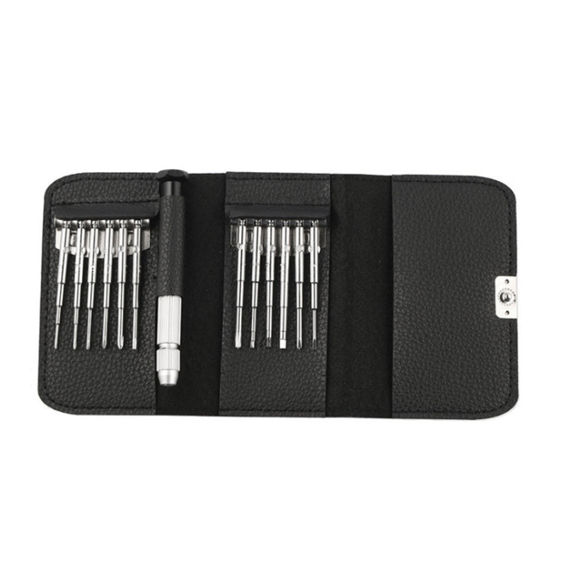 Our set of tools uses vanadium steel, high hardness, durable, and non-slip. Includes specifications: six-star T6 / T9, inner hexagon H1.5 / H2.0 / 2.5mm, cross 2.5 / 2.0 / 1.5 / 1.3 / 1.0mm, cross 1.5mm, middle plate cross 0.6mm.
