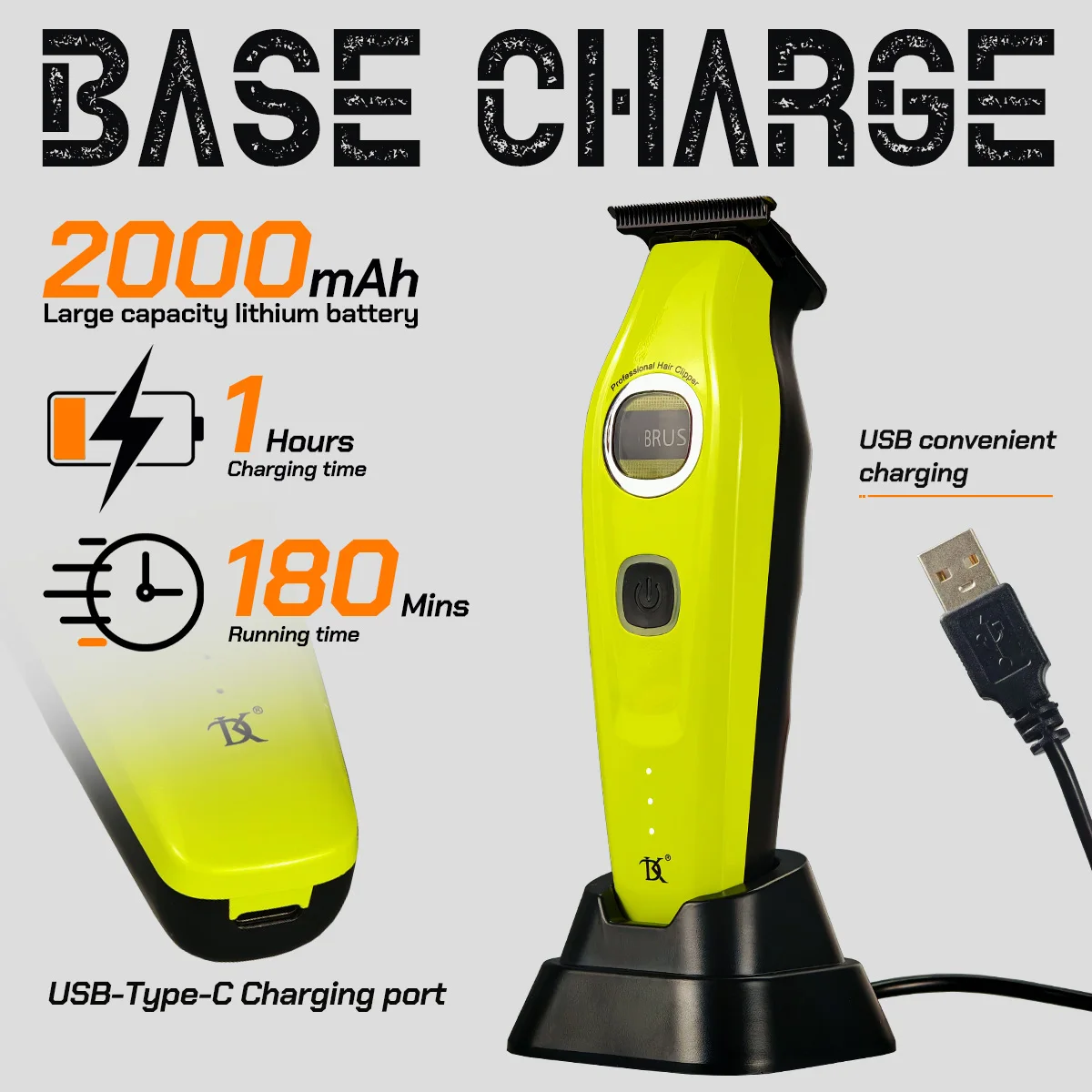 ✔ Base Charger & 2600mAh Battery – Convenient charging with long-lasting battery life, ideal for salon or home use.Charging for 1 hour, wireless operation for 180 minutes, fast charging
