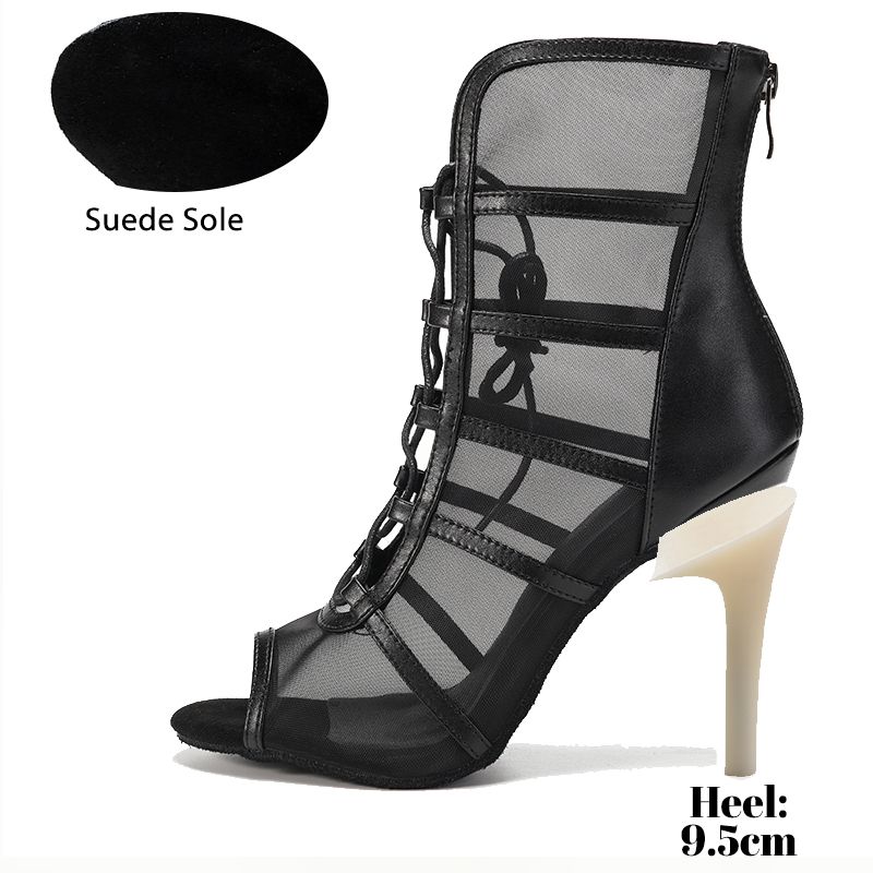 DKZSYIM Latin Dance Shoes High Top Women Ballroom Dance Boots Soft Soles Ladies Tango/Salsa Mesh Dance Shoes High Heels 6-10 CM
