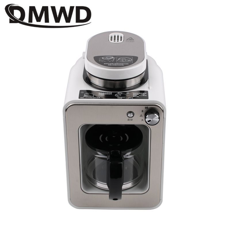 DMWD Household Automatic American Coffee Machine Drip Type Coffee Maker With Filter Coffee Bean Grinder 2 in 1 Tea maker 220V